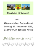 Herzliche Einladung zum Ökumenischer Gottesdienst "Frieden unter uns"