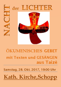 Ökumenisches Gebet mit Texten und Gesängen aus Taizé am Samstag, 28. Oktober 2017, 19.00 Uhr, St. Bonifatiuskirche Schopp weiterlesen