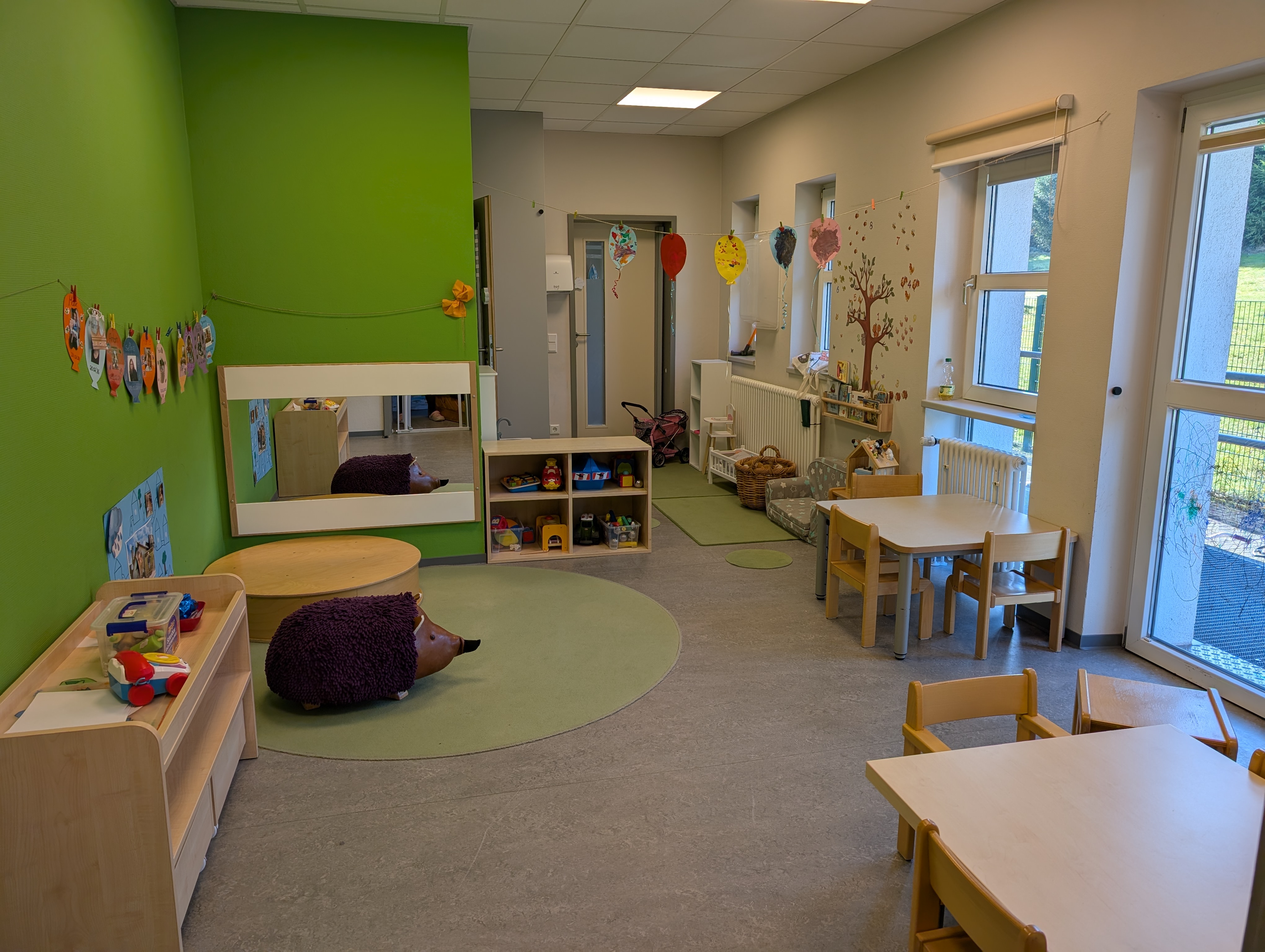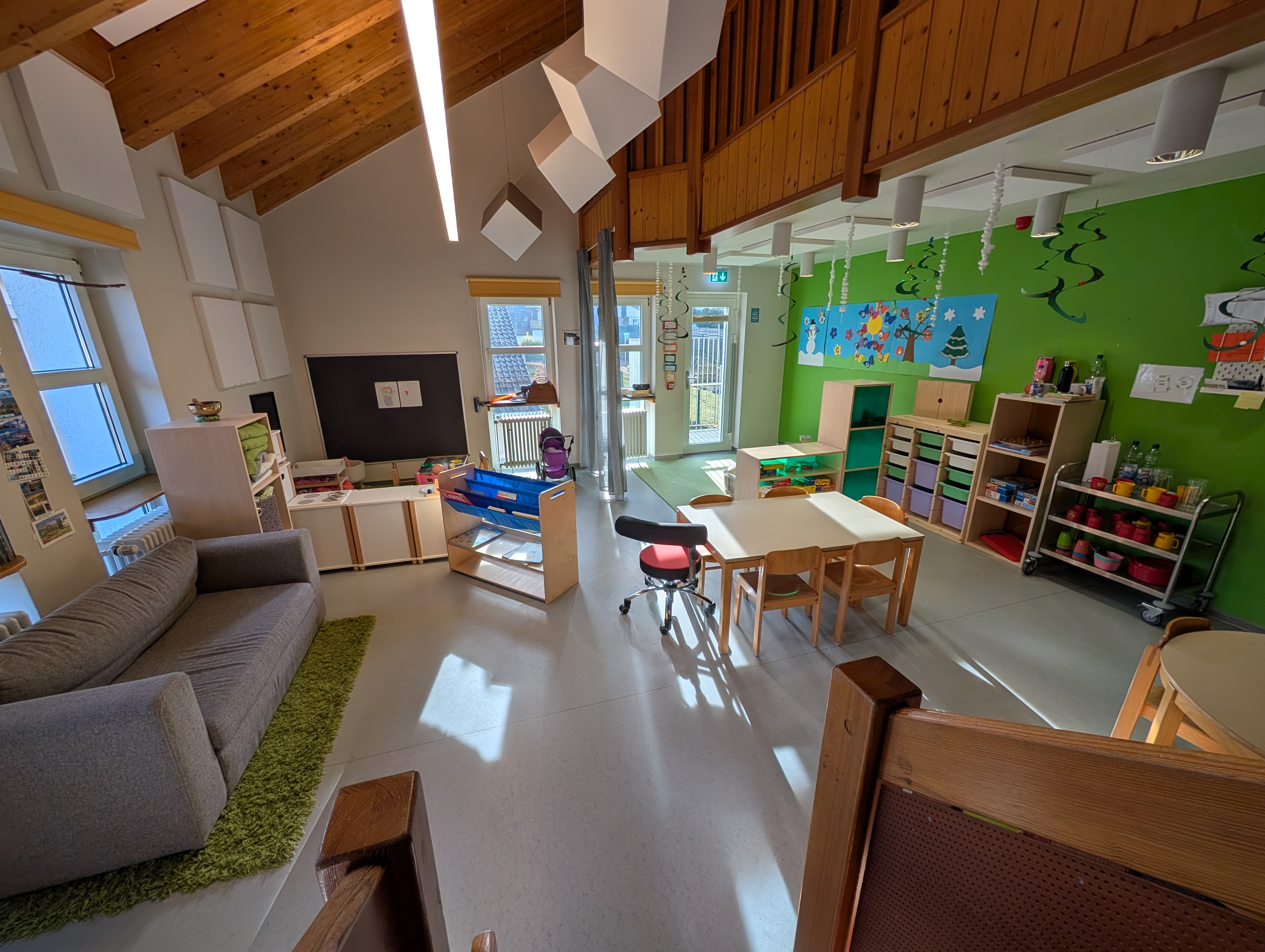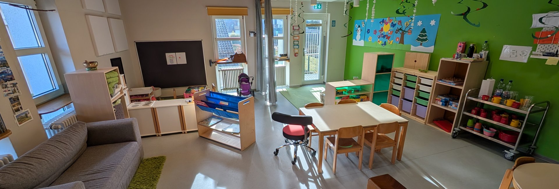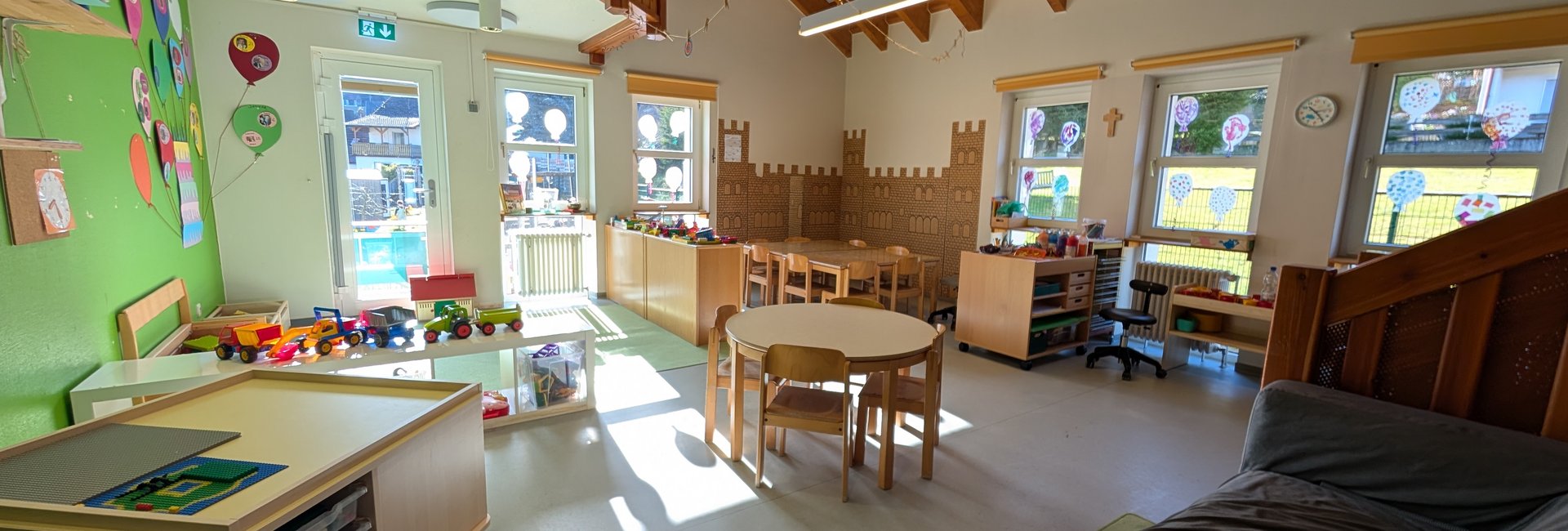 Wir betreuen insgesamt 54 Kinder in drei Gruppen. Unser Alltag ist geprägt von Geborgenheit, Wertschätzung, christlichen Werten und einem liebevollen Miteinander. Die Kinder erleben bei uns einen strukturierten, aber gleichzeitig lebendigen Tagesablauf mit viel Raum zum Spielen, Entdecken, Forschen und Bewegen, drinnen wie draußen.