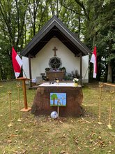 Die Wallfahrt schloss mit der Vesper unter der Leitung von Pfarrer Volker Sehy ab. In seinen Predigtgedanken griff Pfarrer Sehy das Motiv der Kugel auf und interpretierte ergänzend das W mit Wir. Einzelsegnung anlässlich der Heiligen Jahres mit Weihwasser mit Rosenduft und der Schlussegen schlossen die Wallfahrt ab.