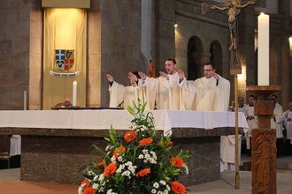 "Zum Altar Gottes will ich treten, zum Gott meiner Freude." Diesen Psalm 43,4 haben sich die drei Priesteramtskandidaten als Thema des Weihegottesdienstes ausgesucht. Und so legten Tobias Heil, Sebastian Bieberich und Alexander Klein vor Bischof Dr. Karl-Heinz Wiesemann ihr Weiheversprechen ab. Der feierliche Gottesdienst mit einer bewegenden Predigt unseres Bischofs zum Thema "Wertschätzung" wurde musikalisch vom Domchor und den Dombläsern gestaltet.